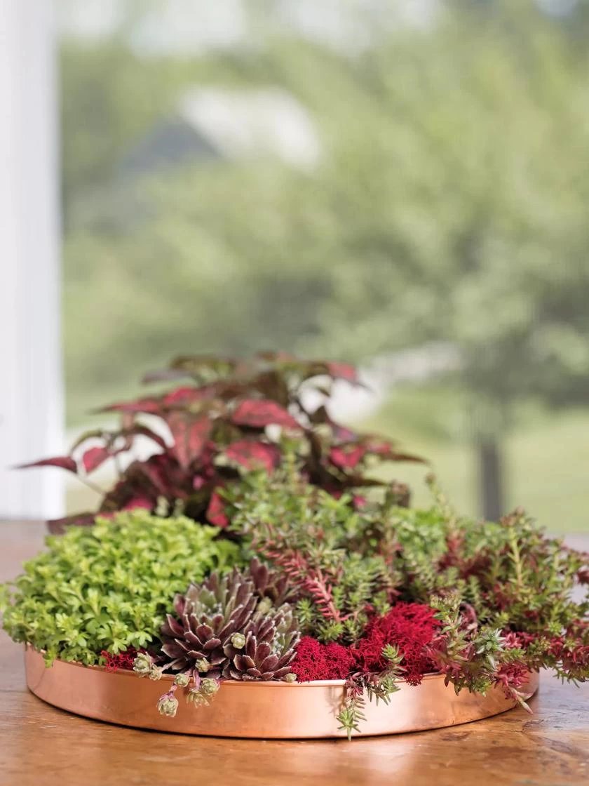 Large Round Copper Plant Tray, 14″
