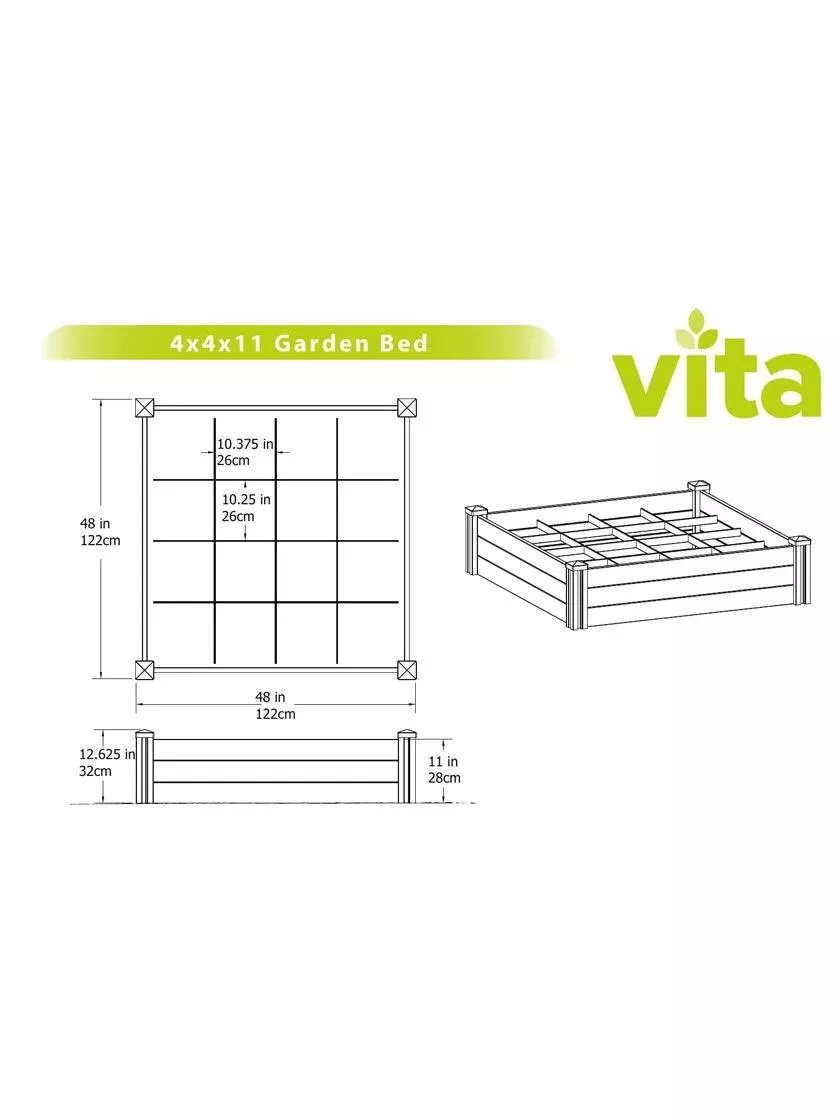 Raised Garden Bed With Grow Grid, 4′ X 4′