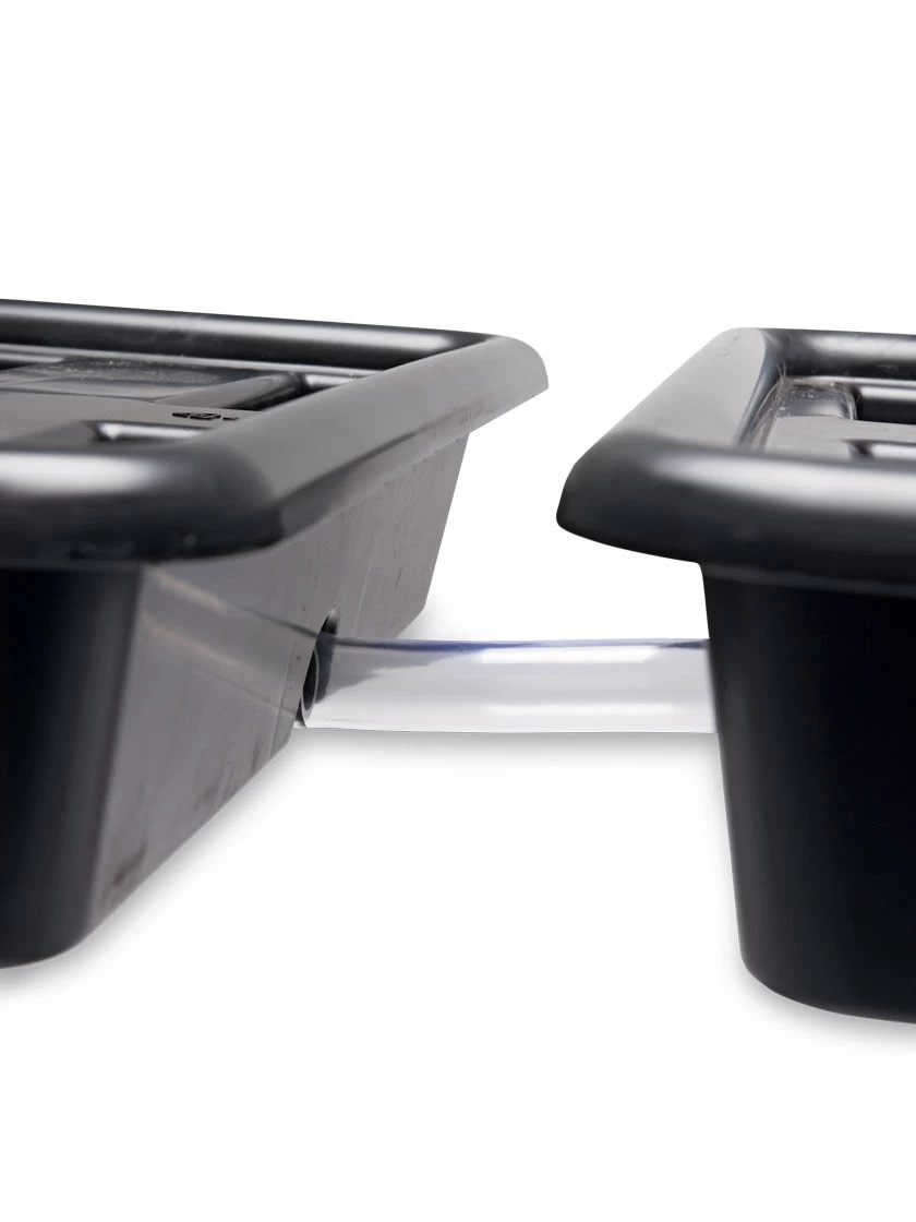 - Each 5-gallon reservoir is 22″ sq. x 4-1/2″ H